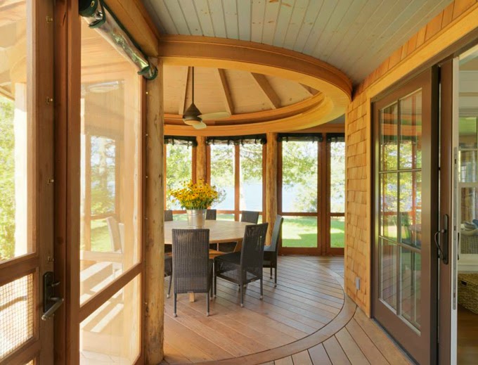 What a dream to live at the end of a peninsula on the shoreline of Lake Champlain in Vermont! The Cushman Design Group, an architectural and interior design firm out of Stowe, VT, designed this camp-style home with breathtaking lake views in every direction! I love the cozy, relaxed interior and the breezy color palette that brings the feel of the water indoors! How cool is that mason jar light fixture?! I've never seen anything like it! The blue backsplash is gorgeous too! There's lots more of the home to see with photos by Susan Teare, so head here to finish your tour!
