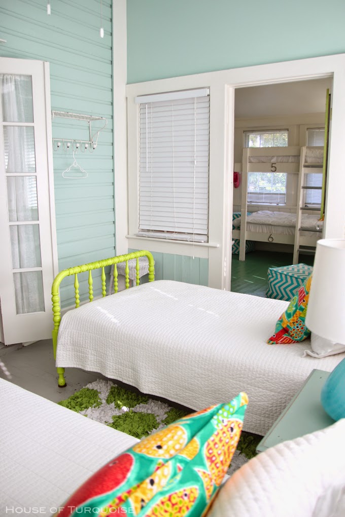 Today we're finishing up the tour of Southern Tides, the incredible Tybee Island beach home designed by none other than the uber-talented Jane Coslick! (See Part 1 of the tour here.) It was like Christmas morning when my nieces and nephew laid eyes on the bunk room for the first time...they were SO excited! And I was so excited about the sleeping porch! Have you ever seen such a fun one?! We definitely took our turns hiding in there for some R&R! Another personal favorite was the outdoor shower just outside the bathroom in our Starfish bedroom. Not only that, but the outdoor vanity. I loved curling my hair on the porch overlooking the pool, never done that before!