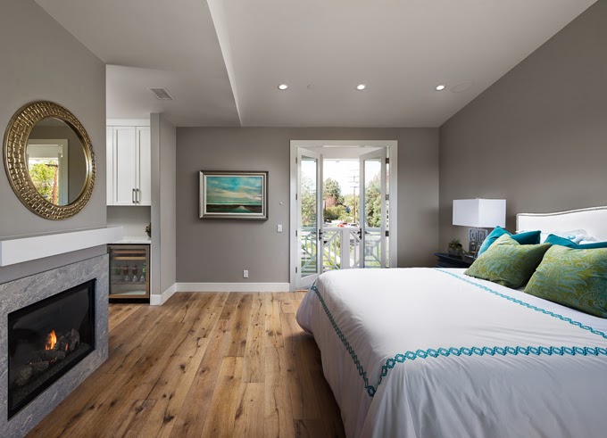 What I love most about this Newport Beach, California home is its beach vibe with a modern edge! RUHM Inc. captured the sleek home filled with a tranquil palette of grays and whites with turquoise accents. Gerald Hammer and Albert Bernal of Bernal Capital Group chose the surface materials, finishes and fixtures, while Natalie Moreno of Premier Home Staging brought in streamlined style with the furnishings and accessories. What I'd give for that indoor/outdoor space right now...love that huge bifold door! For lots more photos and to read all about the home, go here–the real estate listing is one of the coolest I've seen!